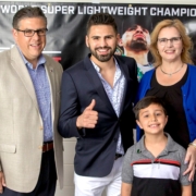 (UPDATE OCT. 13): The Fresno State Feria de Educación Oct. 11 featured opening remarks by José C. Ramírez, a Fresno State alumnus and boxing champion who has represented the United States in the Olympics. He delivered a moment-of-silence tribute to the late Dr. Joseph Castro, former California State University chancellor and former Fresno State president who passed away Aug. 24. In this 2016 photo, José poses with Dr. Castro, former First Lady Mary Castro and son Jess. Ramírez, who also spoke at the first Feria in 2015, delivered a eulogy at Dr. Castro’s Celebration of Life Oct. 5 at Harris Ranch in Coalinga. Like the boxing champion, Dr. Castro was a champion of La Feria de Educación that is presented by Fresno State Outreach and Special Programs, the CSU and UnivisionFresno.