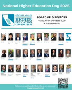 As educators across the nation face urgency reimagining higher education to meet the needs of today’s students and society, CVHEC announced topics for its Higher Education Summit 2025 set for May 9 in Fresno that present voices from policy makers and practitioners nationally, statewide and from throughout the Central Valley’s 10-county region. The CVHEC 2025 Summit brings together chancellors, presidents and campus directors of 28 Central Valley institutions of higher education — who make up the CVHEC Board of Directors – with other educators and policy makers including elected officials who develop litigation that affect the region.