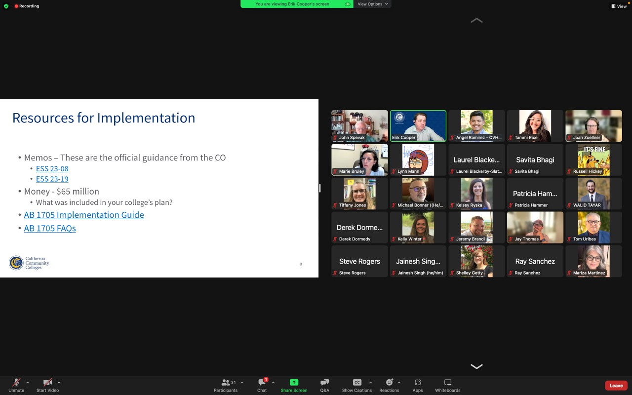 The Math Task Force, which started as 15 members and has expanded to more than 75 participants, will meet in a series of three Zoom convenings related to implementation of AB 1705 and the 15-member English Task Force is planning one meeting devoted to artificial intelligence.